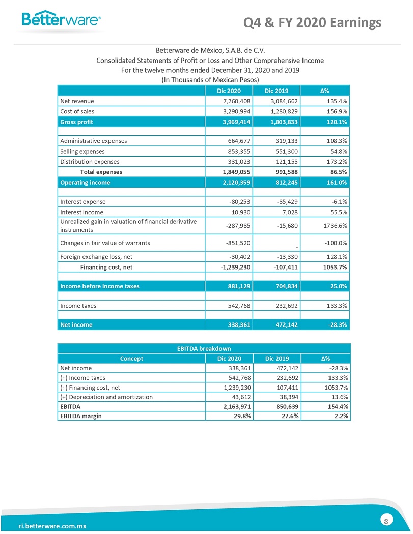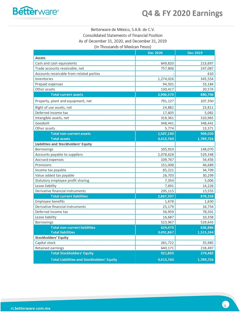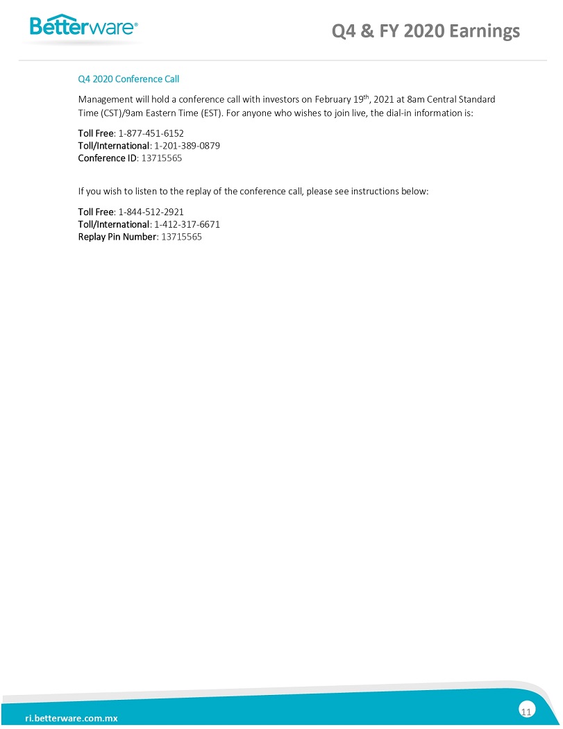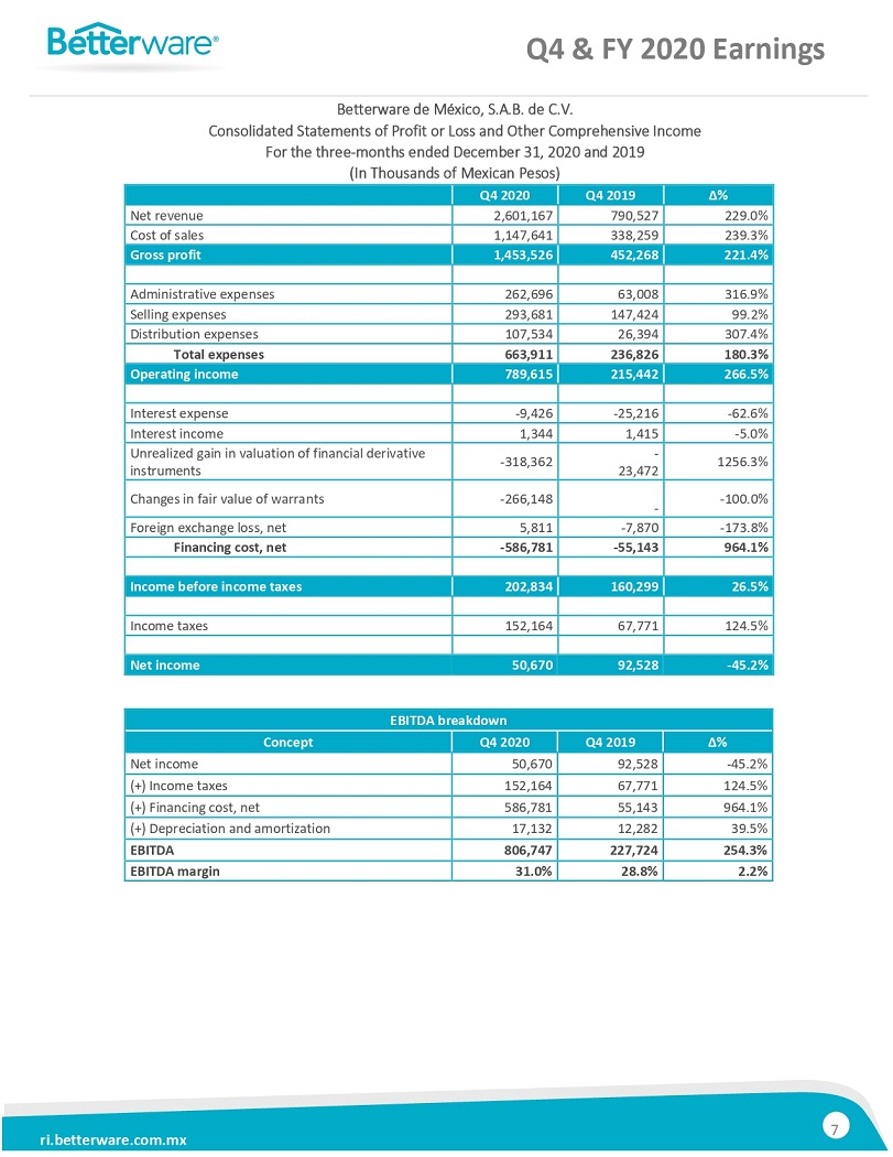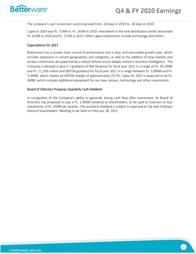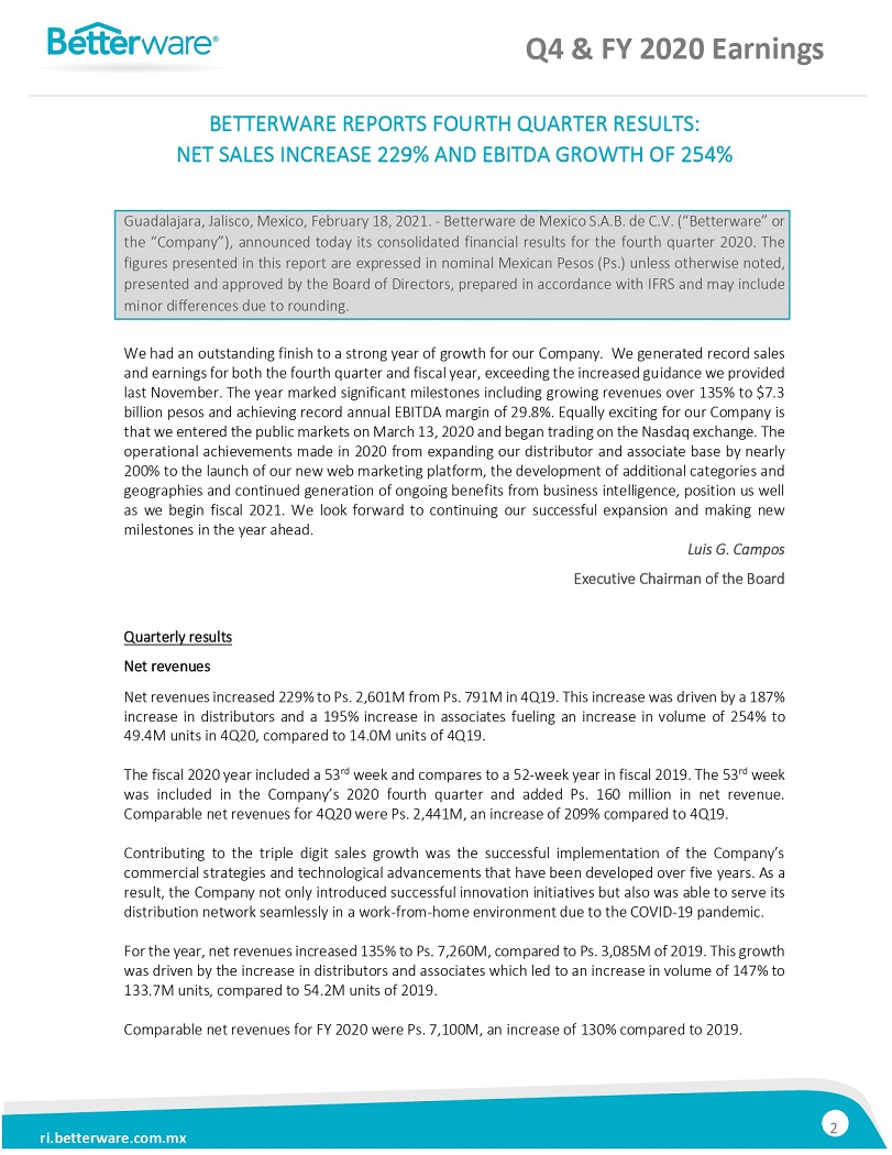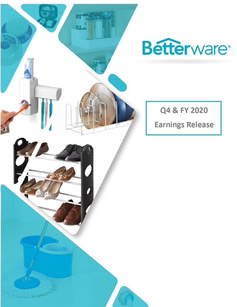 BETTERWARE REPORTSFOURTH QUARTER RESULTS: NET SALES INCREASED 299% AND EBITDA GROWTH OF 254%