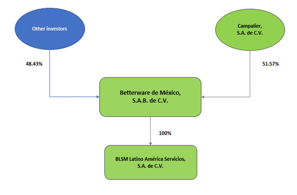 Immediately after the Company’s Restructure and the transfer of the Campalier Share to Campalier, Forteza indirectly owned, through Banco Invex, S.A., Invex Grupo Financiero (“Invex”), as trustee of the irrevocable management and security trust No. 2397 (the “Invex Security Trust”), executed on March 26, 2016, as amended, with CS, as beneficiary, approximately 38.94% of the outstanding common stock of Betterware, and Campalier indirectly owned, through the Invex Security Trust, approximately 61.06% of the outstanding common stock of Betterware.