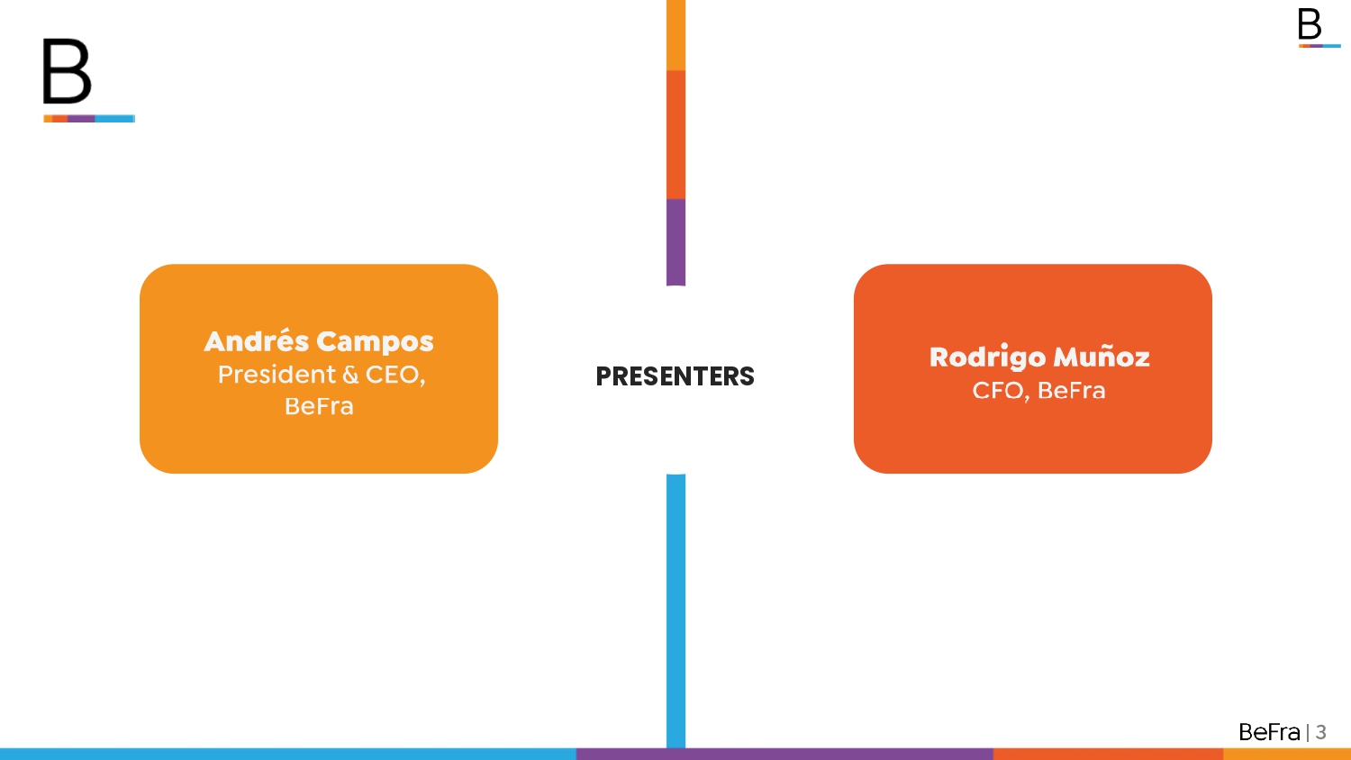 | 3 PRESENTERS Andrés Campos President & CEO, BeFra Rodrigo Muñoz CFO, BeFra