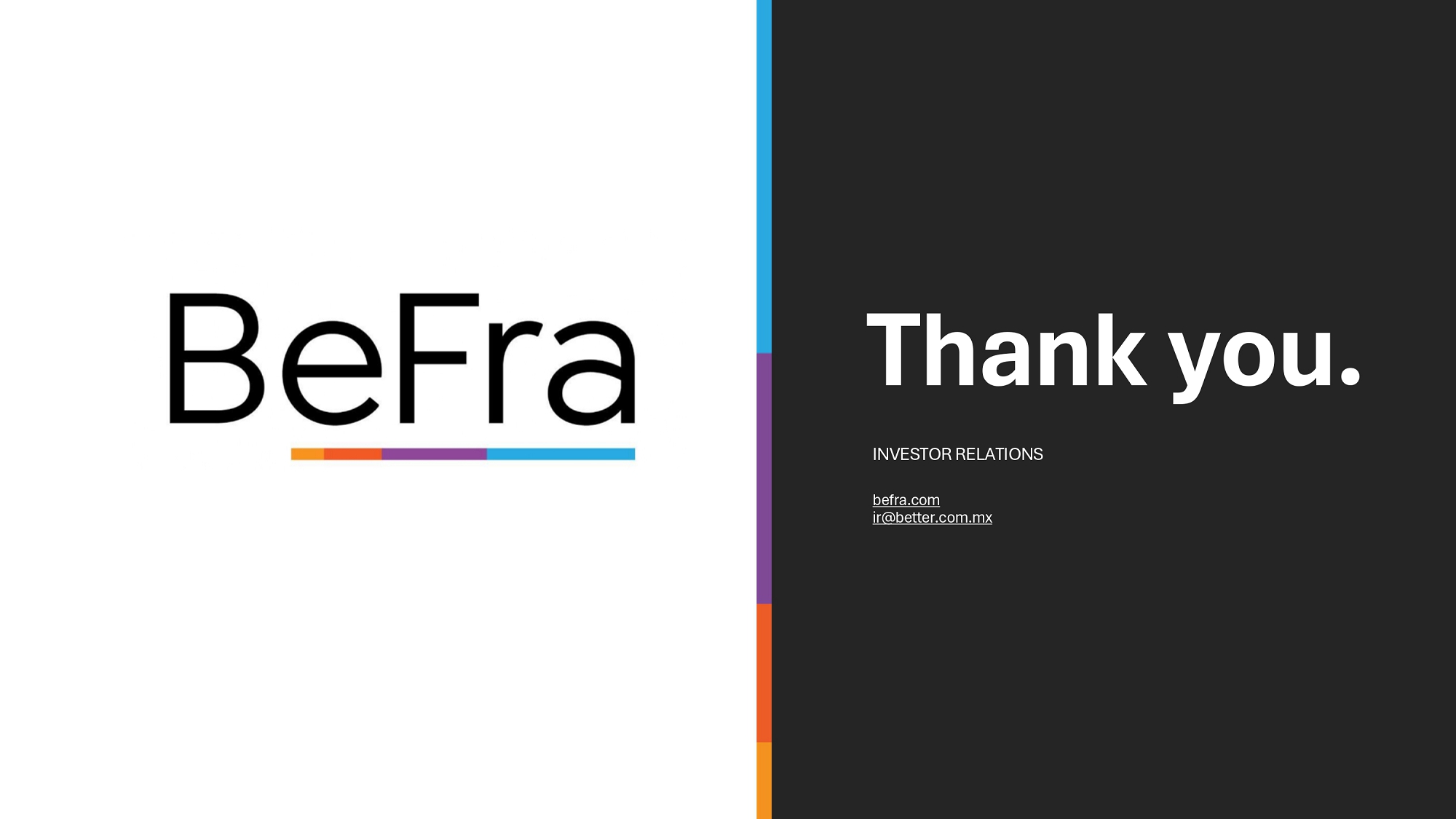 Thank you. INVESTOR RELATIONS befra.com ir@better.com.mx
